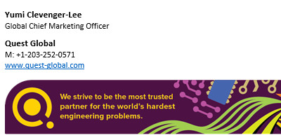 Below is your digital toolkit. Like any good toolkit, it contains everything you need to make repairs and upgrades to your own personal house of Quest Global. Is your signature off-brand? PowerPoint template outdated? Virtual background non-existent? No worries. Scroll down, click around, and fix what’s broken. Your house will be the snazziest one on the block in no time.